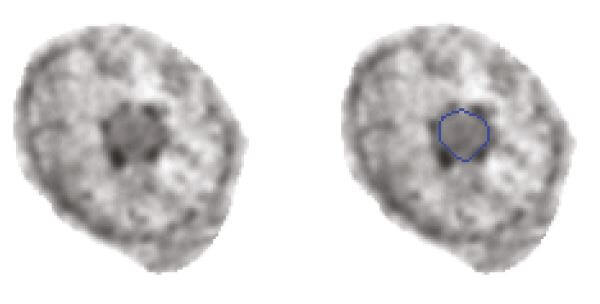 We have generated an initial training set with manually segmented nucleoli and used a deep learning network to extract the features required for automated segmentation.
